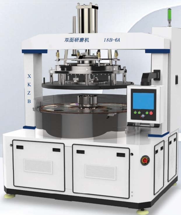 本機型為四電機拖動的18 B雙面研磨設備,可裝載6個13 B的游星輪,主要用于碳化硅、藍寶石、砷化鎵、陶瓷片、晶體、半導體等硬脆材料平行平面的高精度雙面研磨加工, 也可用于手機面板玻璃、車載玻璃及各種觸摸屏面板的雙面研磨加工; 尤其對于大直徑、超薄工件的加工具有明顯的優勢。